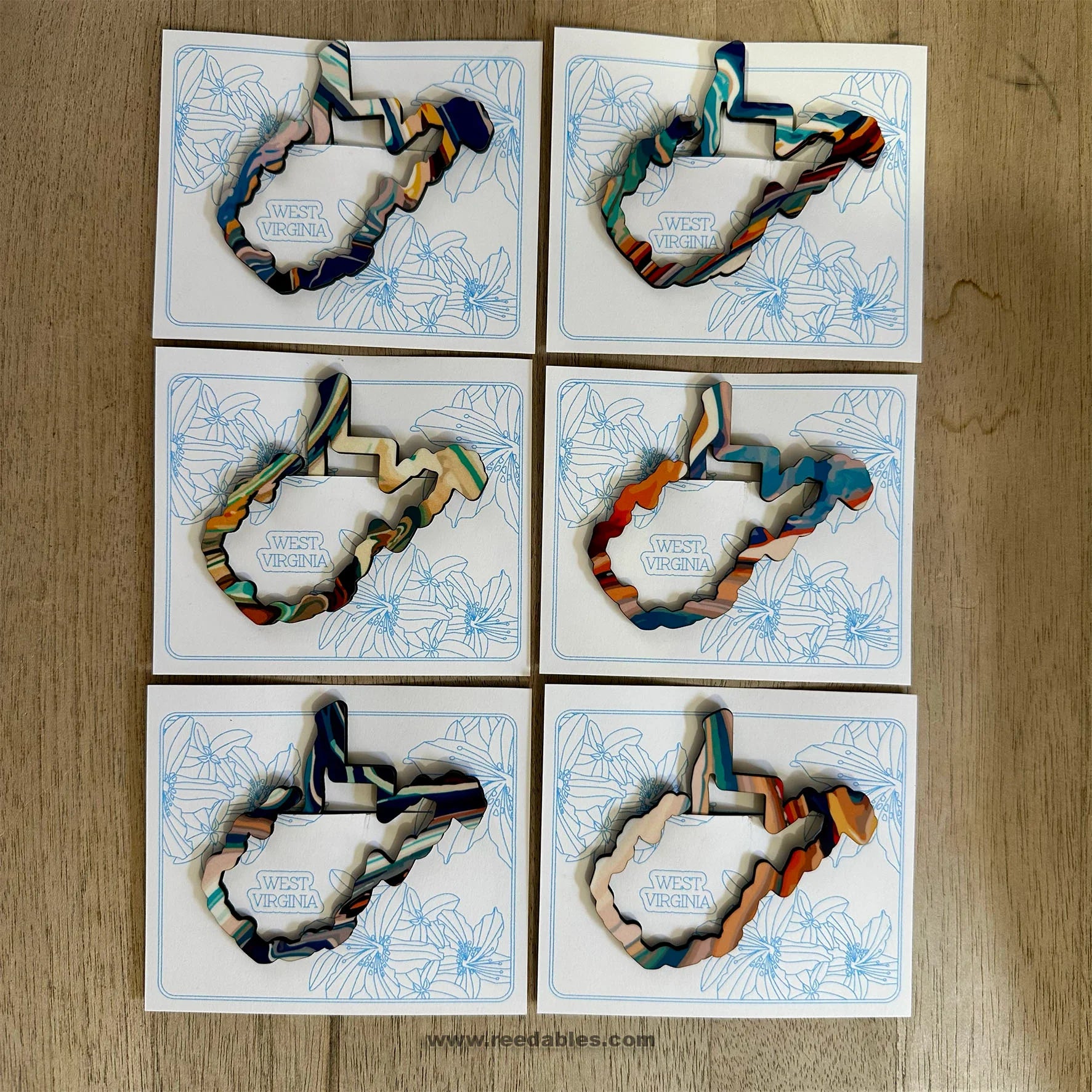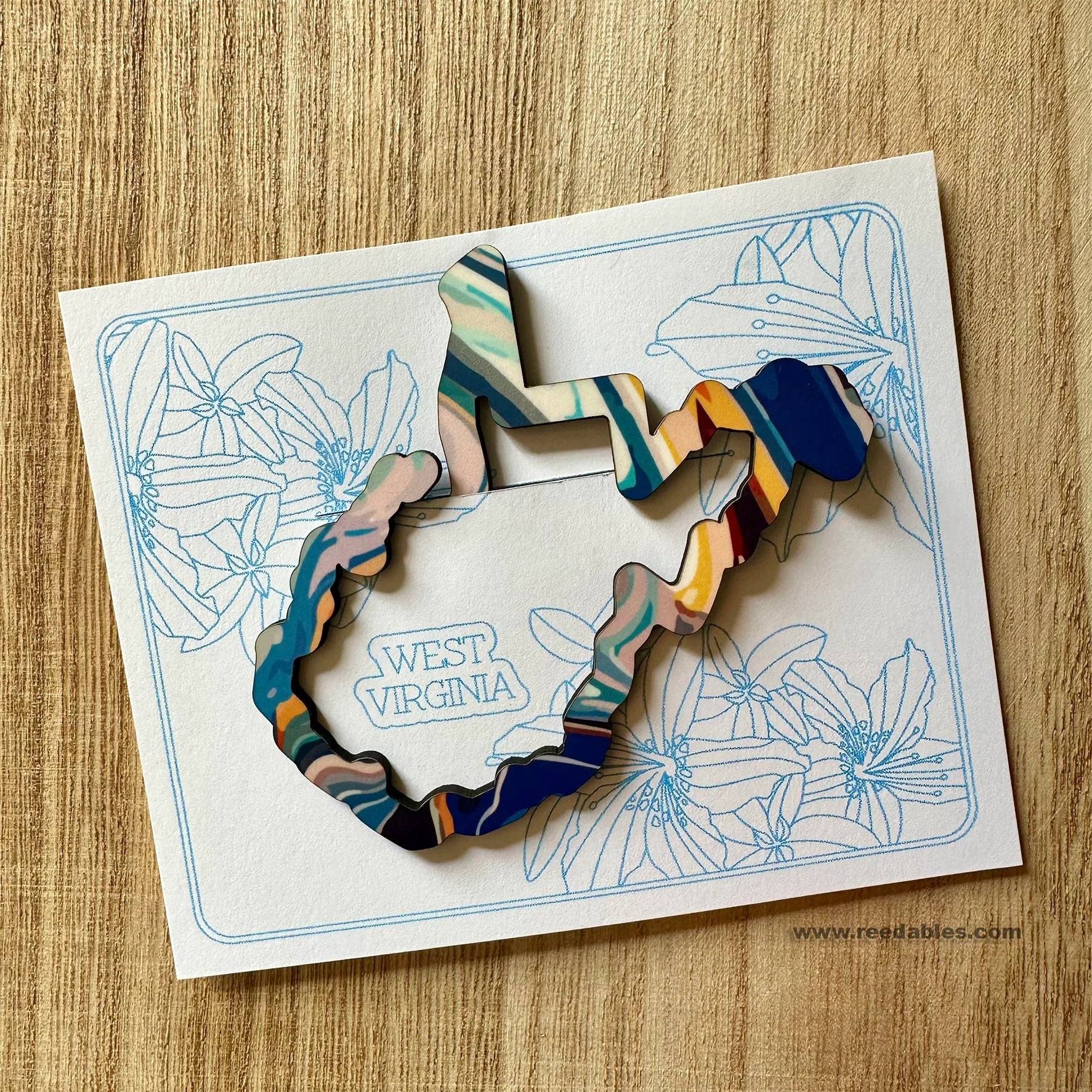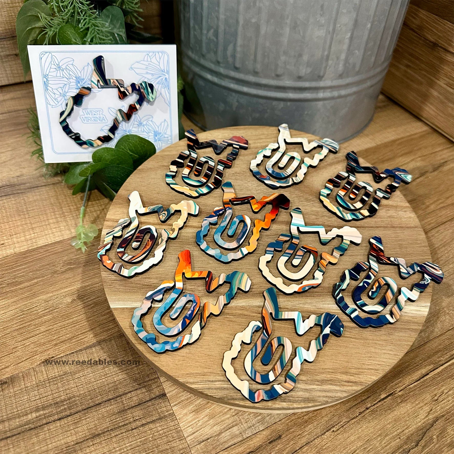 Add a splash of Mountain State pride to your reading time with these stunning sublimated West Virginia bookmarks! Each one is laser made in the shape of West Virginia and features a bold design with vibrant colors and a unique finish — no two are ever the same.